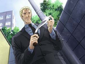 「君と私では戦闘性能が違いすぎるのだよ」 黒い影は、にやりと笑う。 「昔のロボットアニメの見すぎじゃないのあんた・・・」 まりなは、鼻で笑う。 「???」 黒い影は、何のことか解らず少し考えるような素振りをみせる。 (今だ〜!!) まりなは、迷わず引き金を引く! 「甘い!!」 黒い影の姿が幾重にも残像し体勢を後ろにのけぞらせながらこう叫ぶ。 「マトリ○ス!!!!」 銃の弾を 見事なまでに交わす黒い影に まりなは、 「くそ〜落ちろ!!!!」 どこかで聞いたような台詞を叫び メチャクチャに打ちまくる。 「カチッ」 (あっ やばっ 全弾打ちゃった) ホールドオープンするイクイクを見つめながら 固まっている まりなに黒い影は迫る。 (もうこれまでね・・・おじ様、少し早いけどあの世での再会できるかしら・・・) まりなは、苦笑しながら死への恐怖をまぎらわすかのように思った。 「ほう〜まだそんな笑う余裕がありましたか・・・」 そう言いながら黒い影は、まりなの首にナイフを当て少しずらし傷をつけた その傷口から微かに鮮血がにじみ出し まりなの白い肌を赤く染める。 (やだ・・・私・・・まだ死にたくない〜) そう思い始めたまりなの頭の中に 死んだはずの源三郎の声がした。 「法条さん あなたは賢い女性だ、だから決して諦めたりしてはいけませんぞ」 (そうよ任務達成率99%の法条まりなが、こんなことで諦めたらおじ様に会わせる顔が無いわ) そう思った瞬間、黒い影に肘鉄を繰り出し見事にヒットする。 しかしもみ合いの最中、まりなの手首に鋭いナイフの牙が襲いかかる。 「くっ」 まりなの表情は苦痛に歪み 手首を押さえながらバランスを崩してその場に倒れる。 「その怪我では、もう銃は打てまい〜」 血で染まったナイフを少し舐める黒い影を見てまりなは恐怖するが、 多量の出血のショックのせいか まりなはその場から動けない。 (いっ意識が薄れていく・・・駄目よ・・・まりな・・今・・意識を失っては・・・) 「だめ〜!!!」 病室内に響くまりなの声 「夢なの?・・・」 現実の世界に戻ったまりなは、手首から解けかけていた包帯を見て呟く 「私・・・まだ生きてるんだ」 自然と窓に目を向ける まりな (青い空・・・・・) まりなは、数分間思考能力を停止させた。 「まりな君〜」 (聞き覚えのある声・・・) 自らの思考能力のピントを病室の入り口付近に合わせる 「よっ!」 軽いノリの突然の来訪者