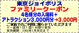 • クーポンは各ジョイポリスの入場窓口にてご提示下さい。入場後はサービスの適用を受けられない場合がございます。