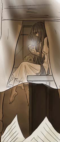 奇妙に手が大きい少女は、校庭の隅で話し込む善行と原を見た後、自分の胸にかけられた青い宝石を見た。 「…それでは駄目だな。それではだめだ。」 |