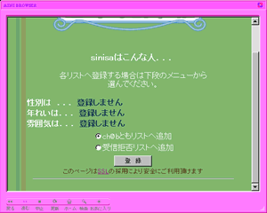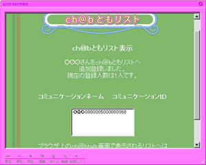 「ch@bとも」の登録をしたユーザーのリストが表示されます。ch@bマークが黒く表示されているユーザーはログインしていない状態を表します。リストの動作、および機能は[USER