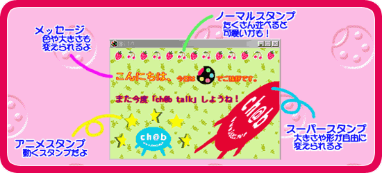 「文字だけのメールじゃ、つまんない!」といった方に最適なビジュアルメールです。ポストカードに メッセージを書いたり、動くスタンプや変形自在のスタンプなどを貼ってお友達に送る事ができます。
