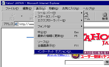 (1)[表示]の中の[インターネットオプション]を選択。
