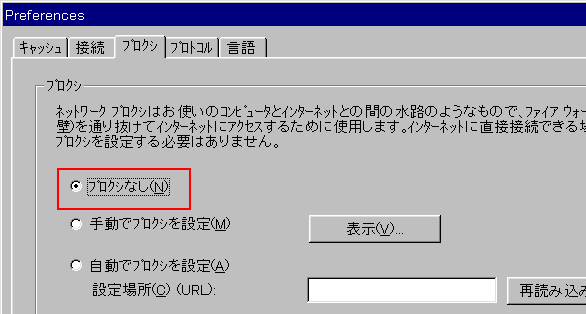 | (2)「Preference」-「プロクシ」から各種パラメータをセット。 |